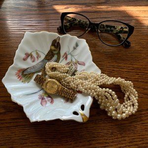 Tags: cottagecore, vintage, hand painted, collectible, antique, Shabby chic, 1920s, 1930s, 1940s, bone china, porcelain, retro, gilded, gold, Mitterteich Bavaria Germany Leaf Shaped Candy Nut Trinket Dish Bird Floral