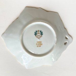 VTG Mitterteich Bavaria Germany Leaf Shape Hand Painted Bird /Floral Design Dish