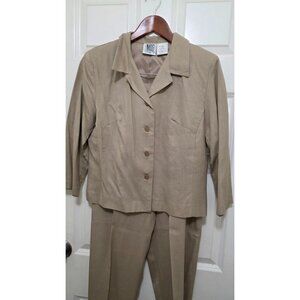 A versatile choice for professional settings, this tailored two-piece beige pant suit offers a polished look with a comfortable fit for all-day wear.
