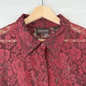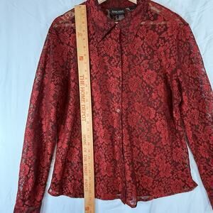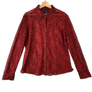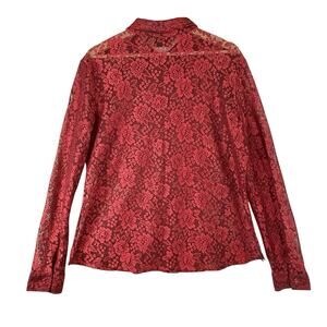 VTG Mobwife Red Lace Blouse WOMENS SIZE XL Whimsigoth Y2k Button Up NY&CO L/S