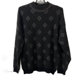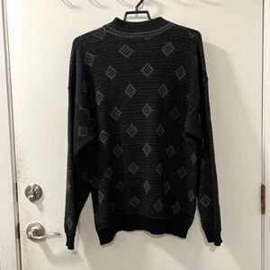 VTG Mondo di Marco Mens Black Gray Diamond Print Wool Blend Sweater Sz Medium