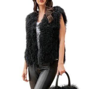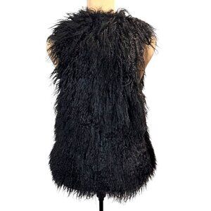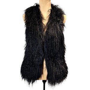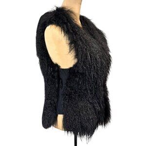 VTG Mongolian Lamb Fur Vest Sz.S Black Sheepskin Shearling Boho Luxury