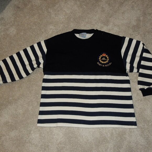 VTG Mont St. Michele France nautical striped breton top shirt womens L XL sweat