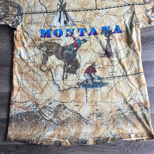 VTG Montana T Shirt Men Large AOP Cowboy Gold Prospecting Map Tee 1993 Tepee USA