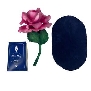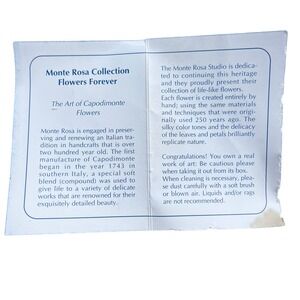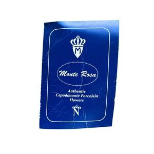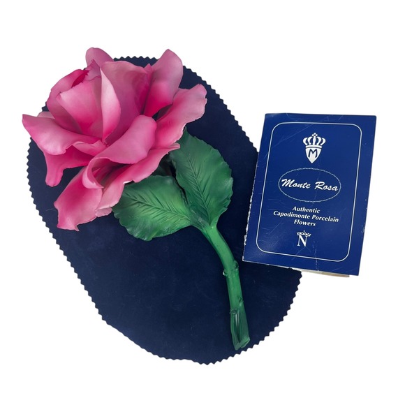 Monte Rose Authentic The Art of Capodimonte Porcelain Flowers Made in Italy. It comes with a dark blue felted cloth.