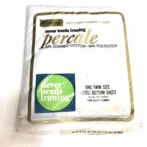 VTG Montgomery Ward Percale Twin Fitted Sheet Bottom Sheet