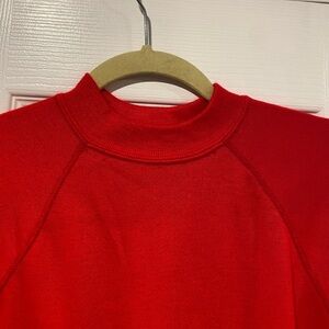 VTG Montgomery Ward Size S Red High Neck Short Sleeve Banded Waist Sweatshirt