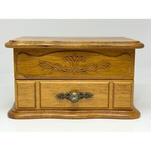 VTG Montgomery Ward Wood Jewelry Box 7.5x5 Rustic Floral Drawers Keepsake Chest