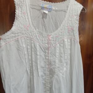 VTG Moon Dance Embroidered Nightgown LARGE Sleeveless Cottagecore Ruffle Pintuck