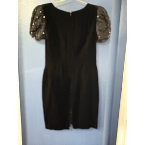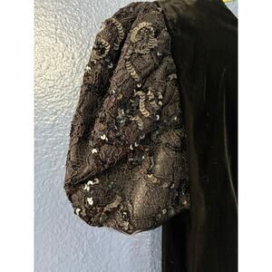Step back in time with this stunning Morton Myles vintage velvet cocktail dress! This Dynasty-style dress features a rich velvet fabric that gives a luxurious look. The sequin detailing on the puffed sleeves adds a touch of sparkle and glamour, making it perfect for holiday parties or special occasions.