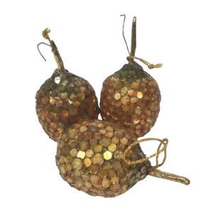Vintage set of three ornaments. We have owned these for over 30 years. Good vintage condition. I do not see any missing or damaged tiles. Measures approximately 4" tall with the stem. Please see pictures for more details. Check out our huge selection of thrifted treasures - bundle your purchases and save on combined shipping!