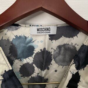 VTG Moschino Cheap and Chic Splattered Dots Blue White Silk Sleeveless Top 8