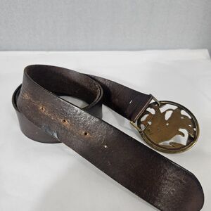 VTG Mossimo XL Brown Leather 2" Belt with Lilly/Iris Floral Brass Tone Buckle