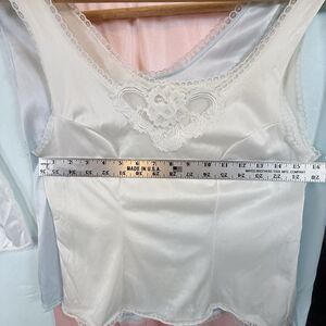 Pre-owned and in great vintage condition. White Cami has a small discoloration of the lace, pictured. Hard to notice. Otherwise just light wear, no hole or obvious flaws found. Please review photos as they are of the exact item you will receive and as they say, a picture is worth a thousand words!