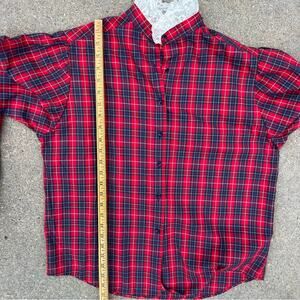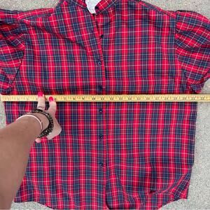 VTG Ms. Sero Red Poplin Christmas Plaid Ruffle Lace L/S Button Up Blouse Size 10