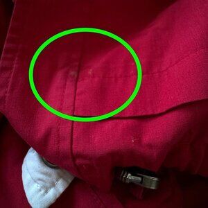 This stylish Vintage Mulberry Street Jacket is a unisex size L. It features a color block design in patriotic USA colors, engraved buttons, and a zip front. Made from 60% cotton and 40% polyester.