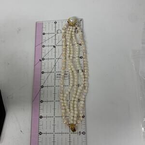VTG Multi Strand Baroque Freshwater Pearl Necklace Bracelet Set Gold Tone Clasp
