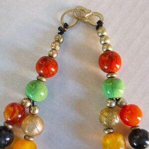 VTG Multi-Color Lucite Gumball Graduated Beaded Double Necklace Sterling Clasp
