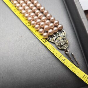 VTG Multi-Strand Faux Pearl Choker Necklace 14.5" Rhinestone Hook Clasp