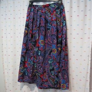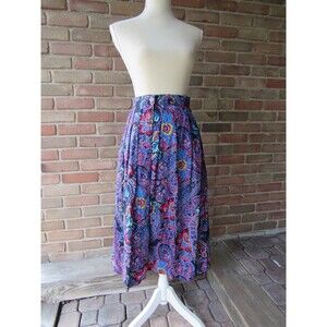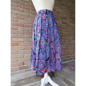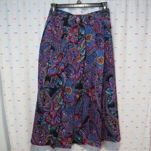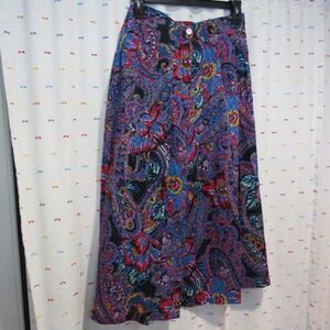 Greenwich Square VTG Multi Color Rayon Lap Skirt Size 9/10 High Waist Midi