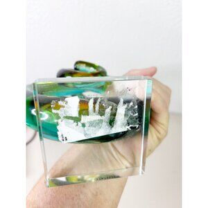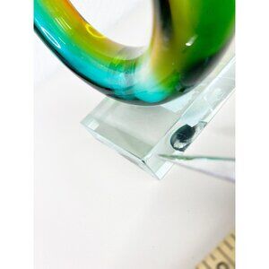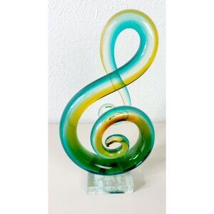 VTG Murano ? Glass Treble Cleft 11" Handblown Decor Blue Green Striped Music EUC