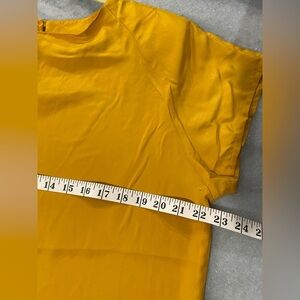 VTG Mustard Yellow Short Sleeve Keyhole Shell Blouse Shoulder Pads Size 14