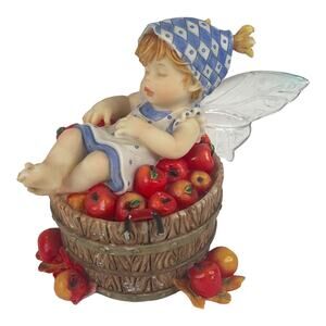 VTG My Little Kitchen Fairies APPLE PICKER FAIRIE In Barrel of Red Apples Figure