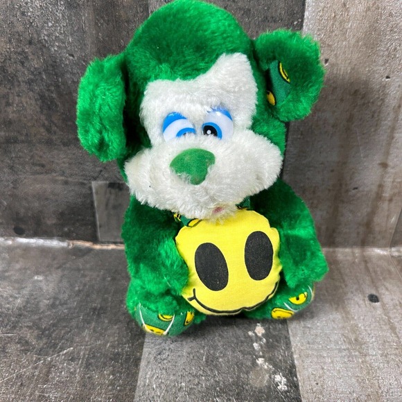 VTG NANCO 1997 Nancy Sales Green Plush Animal Smiley Face Colorful Dog Bear? 7"