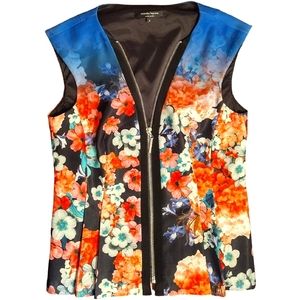 VTG NANETTE LEPORE Floral Print Peplum Zip-Up Vest, Size 4, Multicolored