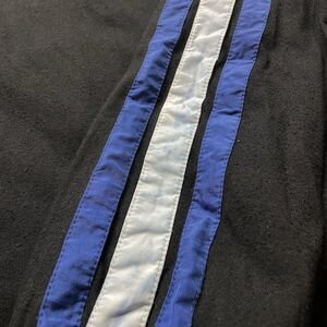 Side B: Black with blue & white stripe details on the shoulders. Jayhawk patch embroidered on the chest. Embroidered Starter logo on left sleeve. 65% polyester & 35% cotton Size XL (pictured on size XL) P2P 27.5 Length 29