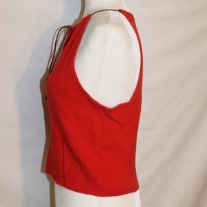 VTG NEVADA Y2K RED LARGE 14/16 KNIT SLEEVELESS TANK TOP BROWN DRAWSTRINGS CROP