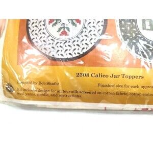 VTG NEW Creative Circle #2308 Calico Jar Toppers - Stamped Cross Stitch Kit