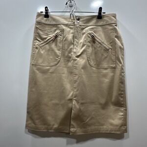 This vintage Ralph Lauren brown khaki equestrian riding skirt in size 12 is a stylish addition to any preppy or academia-inspired wardrobe. Made of cotton with a straight and pencil style, this midi-length skirt features a zip closure and slit for added flair. Perfect for casual occasions, this skirt embodies a mix of equestrian, cowgirl, and bohemian themes, making it versatile for all seasons. Complete with pockets and a timeless retro vibe, this piece is a must-have for women who appreciate classic style with a modern twist.