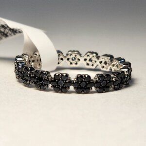 VTG NIB 925 Eternity Black Spinel Flower Ring Size 11