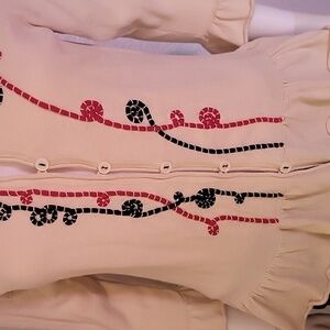 VTG NICK & MO Cream Ruffle Embroidered Peplum Button Down Sweater Medium