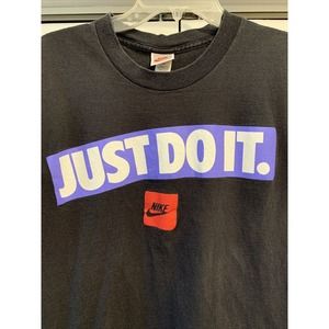 VTG NIKE Just Do It BLACK/BLUE Box Logo Shirt Men’s SMALL RARE Made in USA.