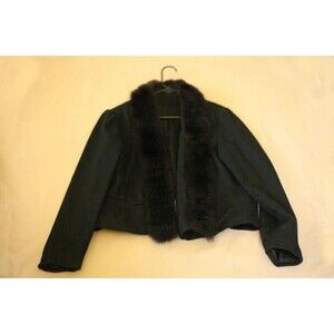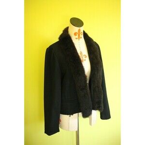Open front jacket with 2 false front pockets and faux mink fur trim. 100% wool.