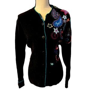 VTG NORM THOMPSON Womens Wool Cardigan Sweater Size XL Embroidered Stars Paisley