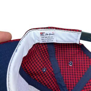 Elevate your street style with this vintage The Game baseball cap. The red and black plaid pattern adds a touch of hip hop flair to any casual occasion. The adjustable strapback ensures a comfortable fit for all head sizes.