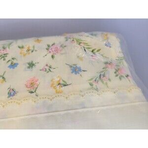 VTG NOS Statepride Twin Flat Bed Sheet Floral Yellow Pink Blue Scalloped Edge