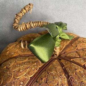 Vintage New without box Handmade Woven Decoration Halloween Decorative Pumpkin Orange/Tan H6"/D9" (Height and diameter)