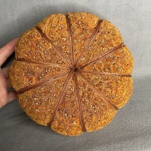 VTG NWOB Handmade Woven Decoration Halloween Decorative Pumpkin Orange H6"/D9"