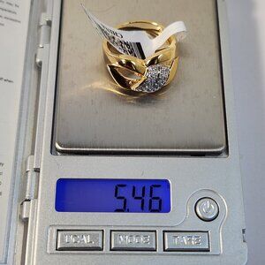 Gemstone: Diamond Round Baguette Style 18K Yellow Gold Over Brass Woven Design Ring.