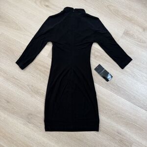 VTG NWT Bebe Long Sleeve Mock Neck Mesh Bodycon Dress Y2K 90s Black LBD Sz XS. Very Robert Palmer, Addicted to Love music video vibe. Brand new with tags. Lined. The mesh detail runs seamlessly over the shoulder in the front and like a racer back cut out in the back. I tried to show it in pics. First pic shows AI generated image for the look of the dress but it didnt get the mesh seams right. Please ask all questions.
