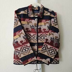VTG NWT JANE ASHLEY Western Horse Aztec Tribal Tapestry Button Jacket Sz M