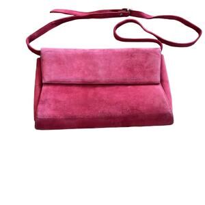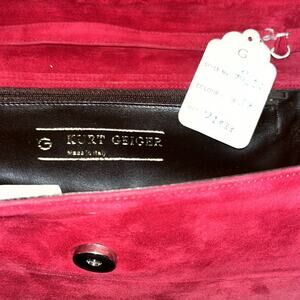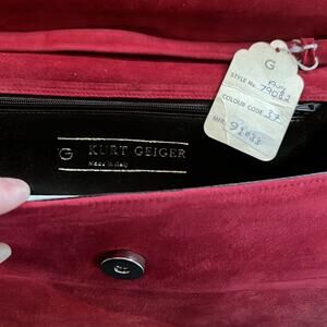 You are viewing a New with Tags Vintage Kurt Geiger Red Suede Adjustable Crossbody Handbag.