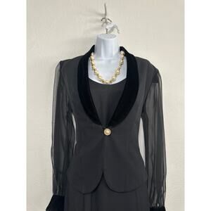 VTG NWT Maxi High Split Sheer Tuxedo Jacket 2pc Dress 8 Black City Nights Formal
