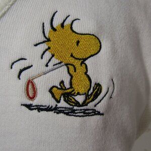 Step back in time with this vintage cream Woodstock Peanuts golfing sweater vest. New with tags, this retro piece offers a unique grandpa style. Perfect for nostalgic fashion lovers and collectors. Size is a vintage large, looks more like a modern medium. Please check measurements carefully.