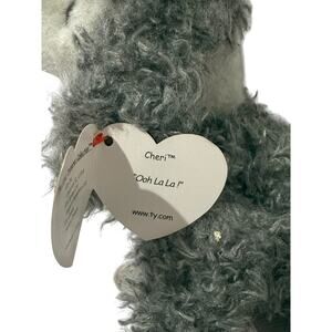 You're looking at a vintage, new with tags, TY Beanie Baby named Cheri! This adorable gray poodle plush dog with its original ear tag is a delightful find from circa 1993.