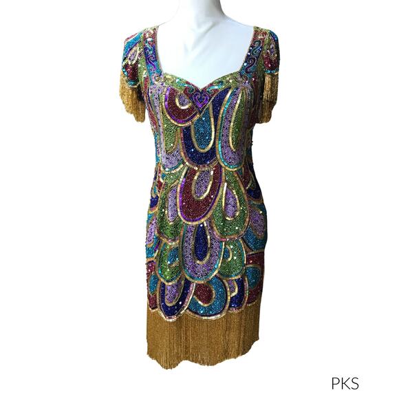 VTG Naeem Khan RIAZEE BOUTIQUE heavy beaded sequins mini sheath dress